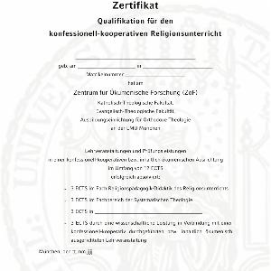 Zertifikat "Qualifikation für den konfessionell-kooperativen Religionsunterricht" des Zentrums für Ökumenische Forschung